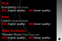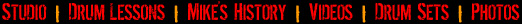 -[ Studio ]- -[ Drum Lessons ]- -[ Mike's History ]- -[ Videos ]- -[ Drum Sets ]- -[ Photos ]- |
